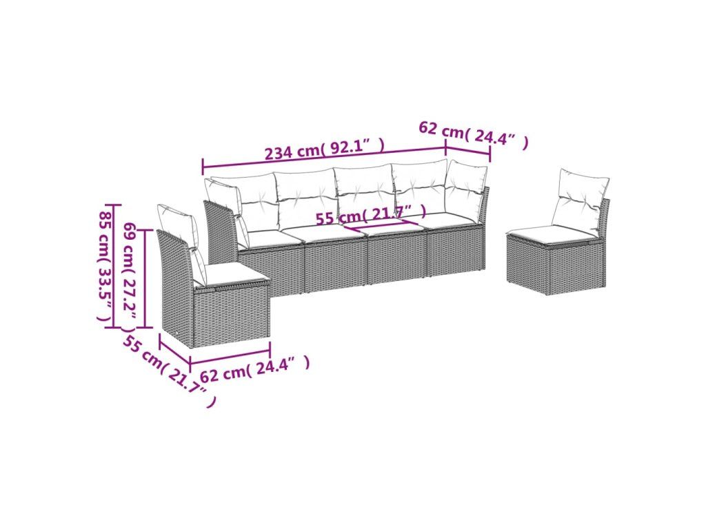 6dílná zahradní sedací souprava s poduškami šedá polyratan 3249209