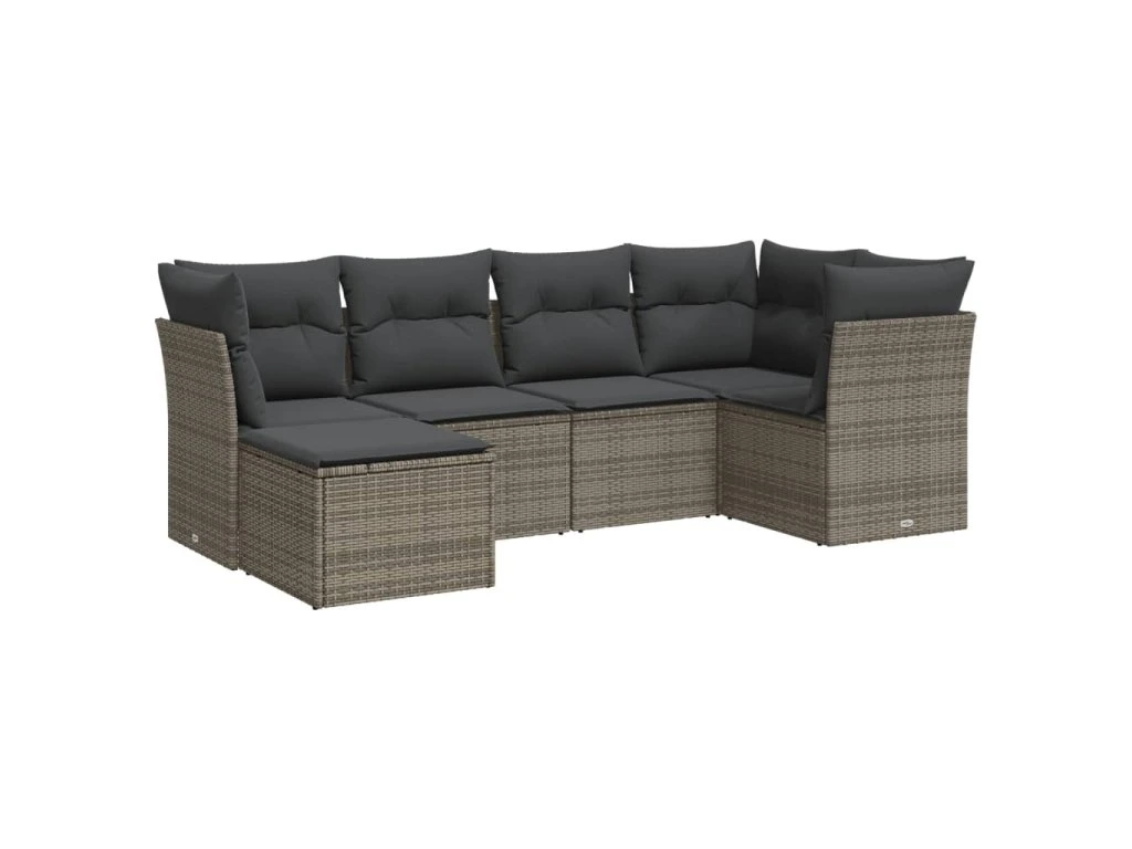 6dílná zahradní sedací souprava s poduškami šedá polyratan 3249789