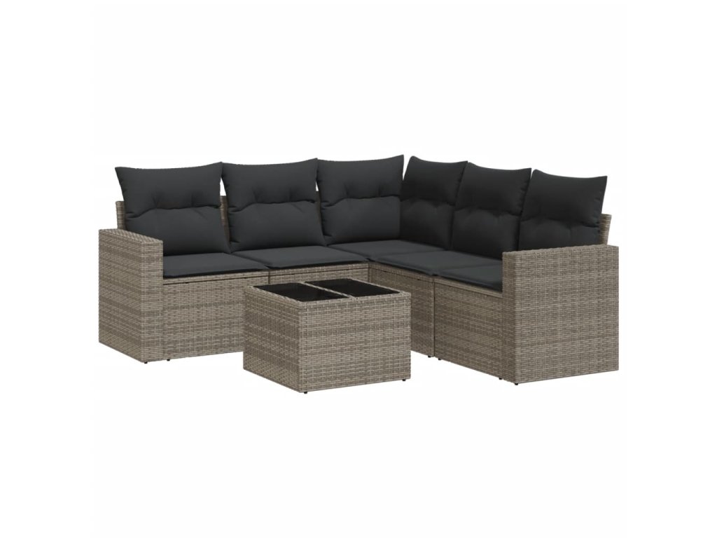 6dílná zahradní sedací souprava s poduškami šedá polyratan 3251297