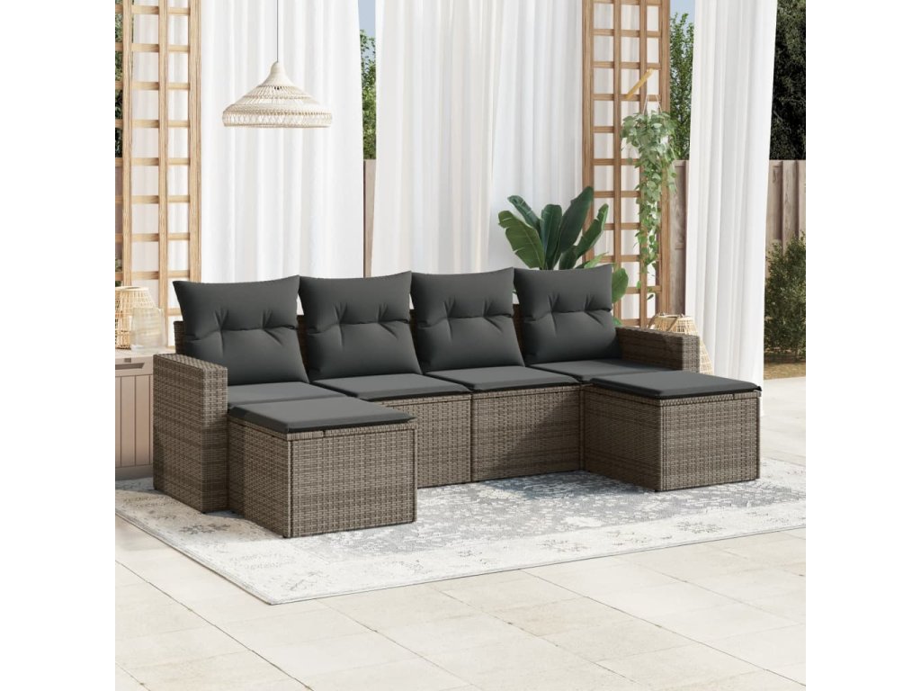 6dílná zahradní sedací souprava s poduškami šedá polyratan 3251657