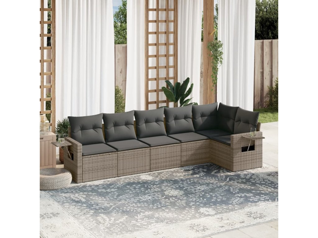 6dílná zahradní sedací souprava s poduškami šedá polyratan 3252527
