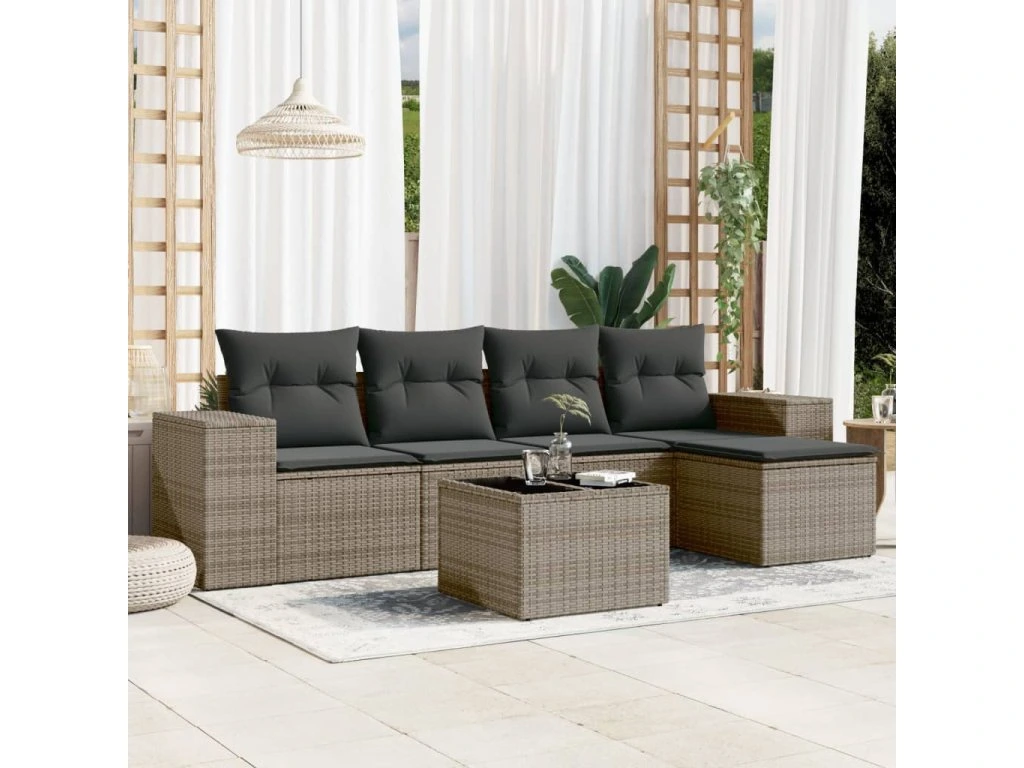 6dílná zahradní sedací souprava s poduškami šedá polyratan 3254837
