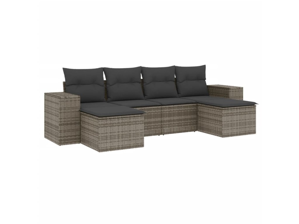 6dílná zahradní sedací souprava s poduškami šedá polyratan 3255257