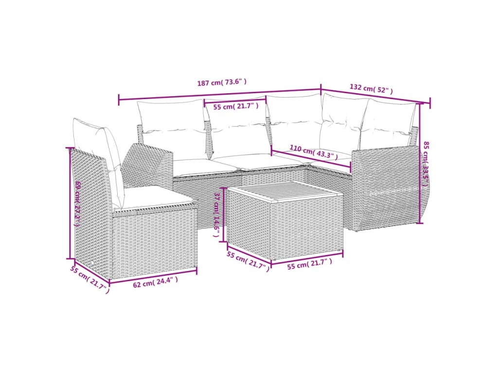 Tato zahradní sedací souprava je dokonalým doplňkem vaší zahrady, terasy nebo dvorku a poskytne vám pohodlné a příjemné místo, kde si můžete povídat s rodinou a přáteli nebo jen tak odpočívat a užívat si pobyt venku.