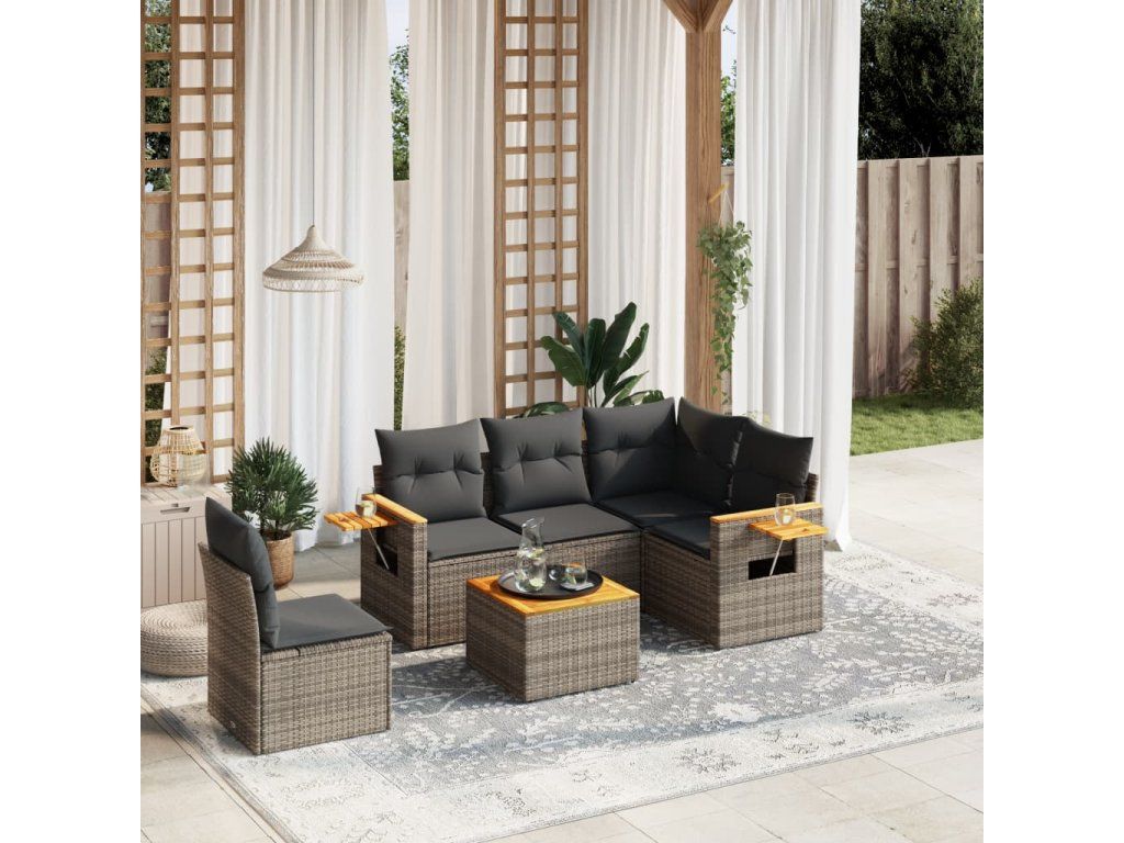 6dílná zahradní sedací souprava s poduškami šedá polyratan 3259225