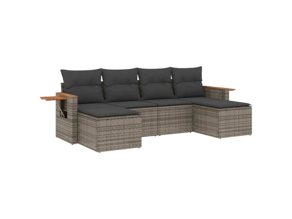 6dílná zahradní sedací souprava s poduškami šedá polyratan 3259463