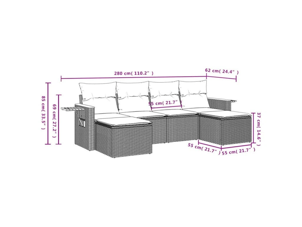 Tato zahradní sedací souprava je dokonalým doplňkem vaší zahrady, terasy nebo dvorku a poskytne vám pohodlné a příjemné místo, kde si můžete povídat s rodinou a přáteli nebo jen tak odpočívat a užívat si pobyt venku.