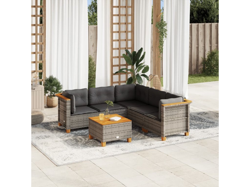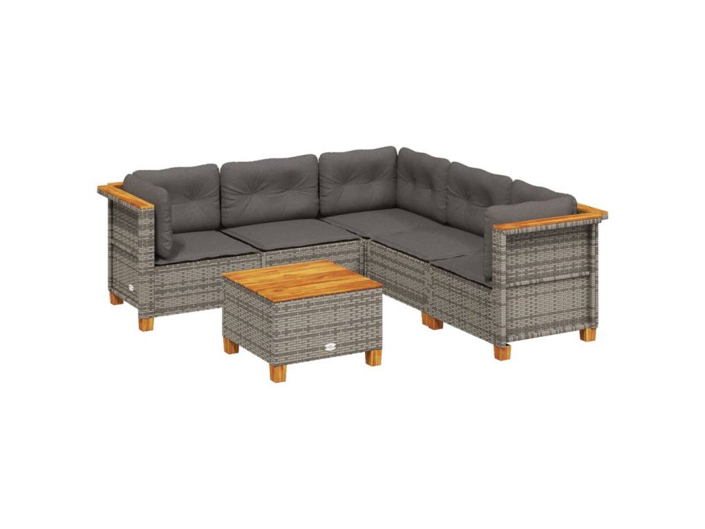 6dílná zahradní sedací souprava s poduškami šedá polyratan 3261828
