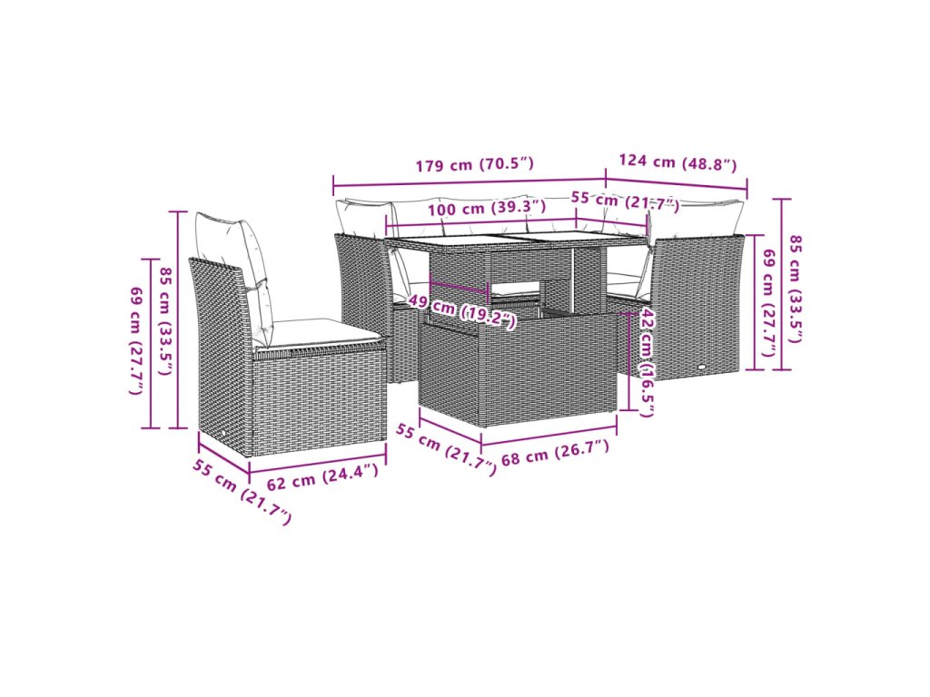 Tato zahradní sedací souprava je dokonalým doplňkem vaší zahrady, terasy nebo dvorku a poskytne vám pohodlné a příjemné místo, kde si můžete povídat s rodinou a přáteli nebo jen tak odpočívat a užívat si pobyt venku.
