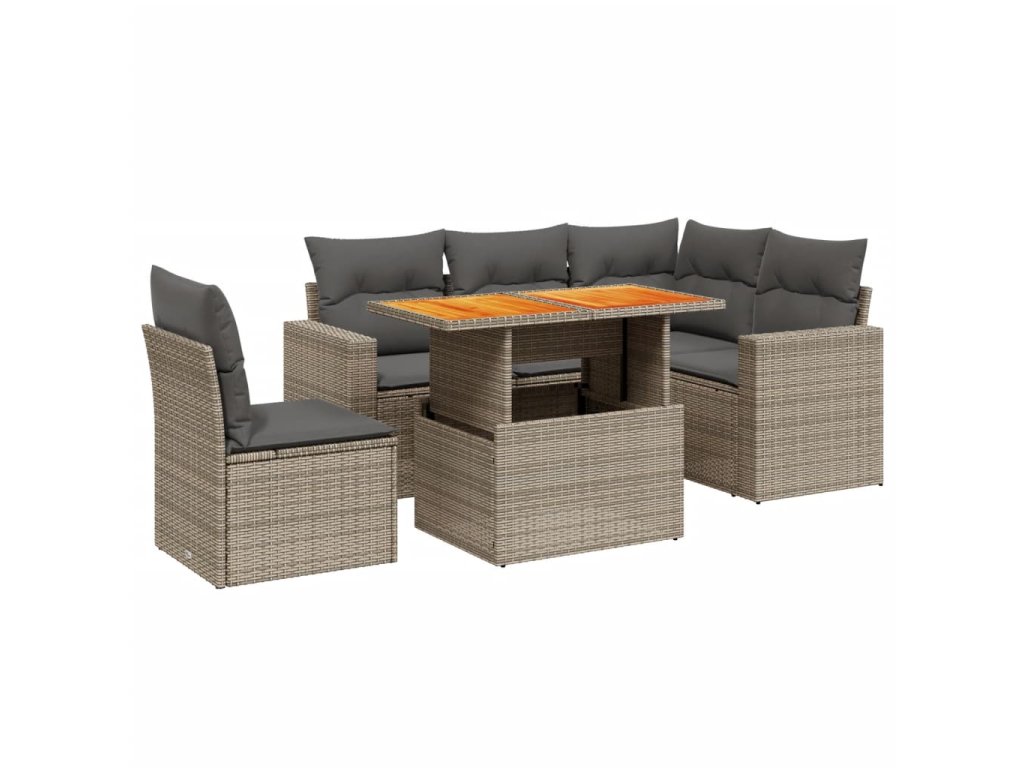 6dílná zahradní sedací souprava s poduškami šedá polyratan 3271319