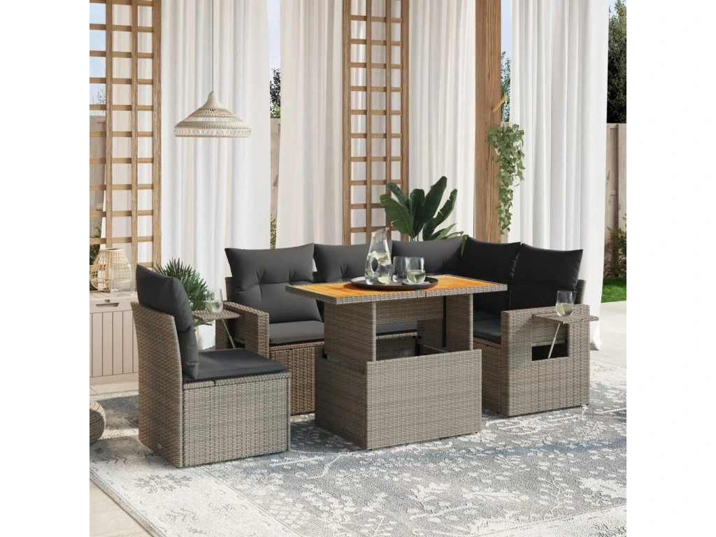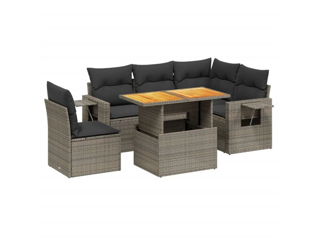 6dílná zahradní sedací souprava s poduškami šedá polyratan 3271760