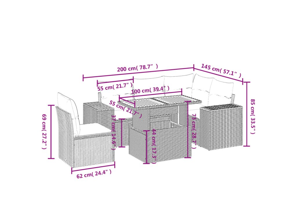 Tato zahradní sedací souprava je dokonalým doplňkem vaší zahrady, terasy nebo dvorku a poskytne vám pohodlné a příjemné místo, kde si můžete povídat s rodinou a přáteli nebo jen tak odpočívat a užívat si pobyt venku.