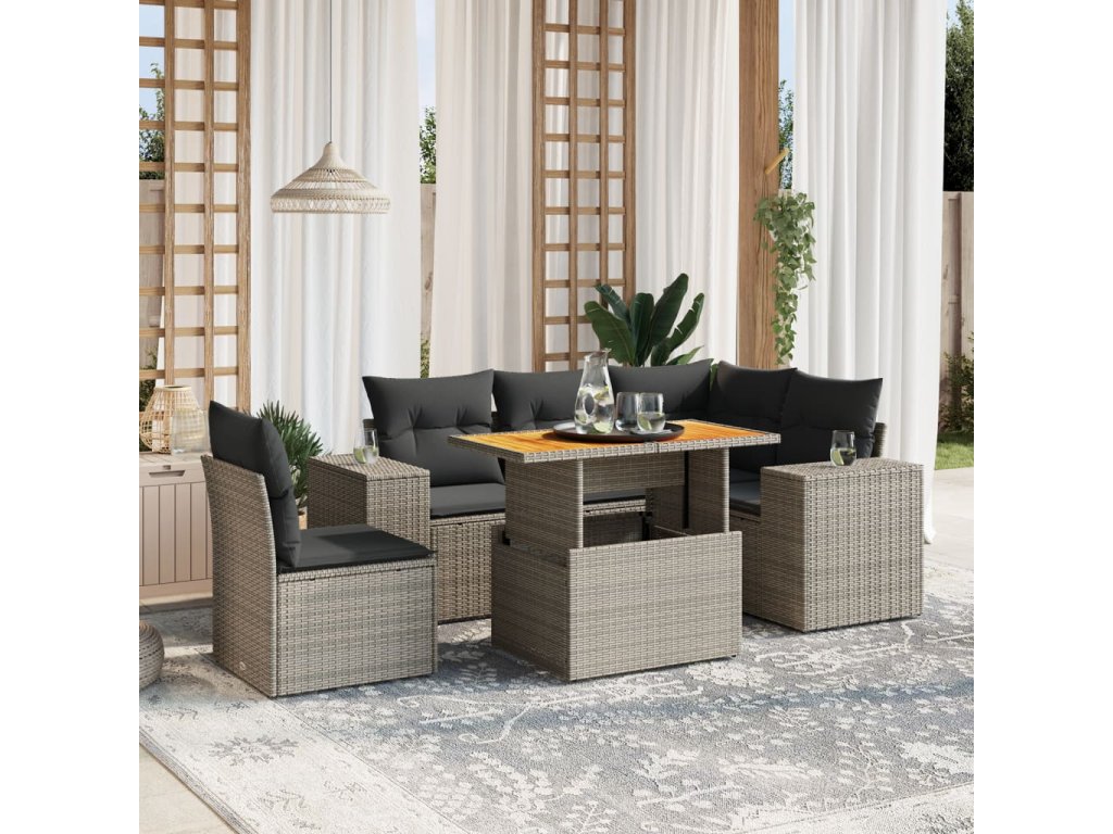 6dílná zahradní sedací souprava s poduškami šedá polyratan 3272642