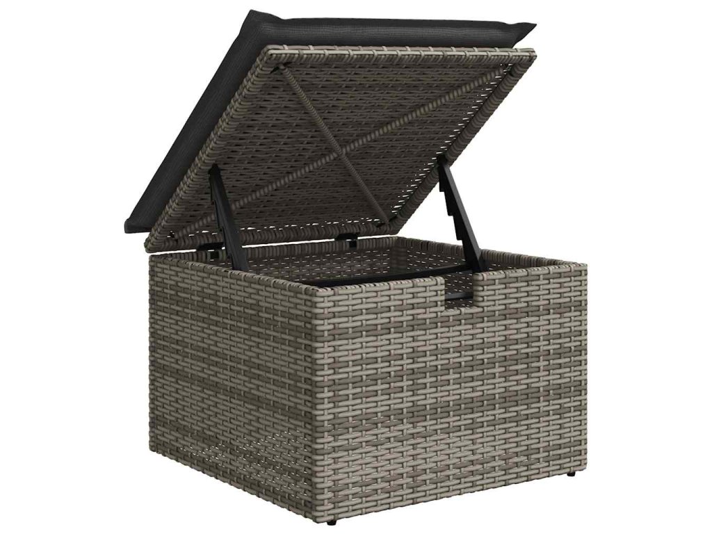 - Úložný prostor s voděodolným vakem: Zahradní nábytek má úložný prostor pod sedákem, který je opatřen voděodolnou vložkou a poslouží vám k ukládání podušek, hraček a dalších věcí. Vnitřní vak lze bezpečně připevnit k venkovnímu nábytku pomocí suchého zipu, což zaručí větší stabilitu.