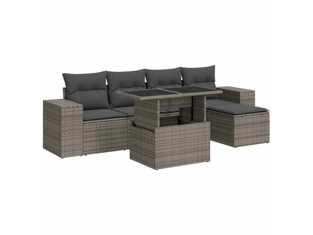 6dílná zahradní sedací souprava s poduškami šedá polyratan 3326781
