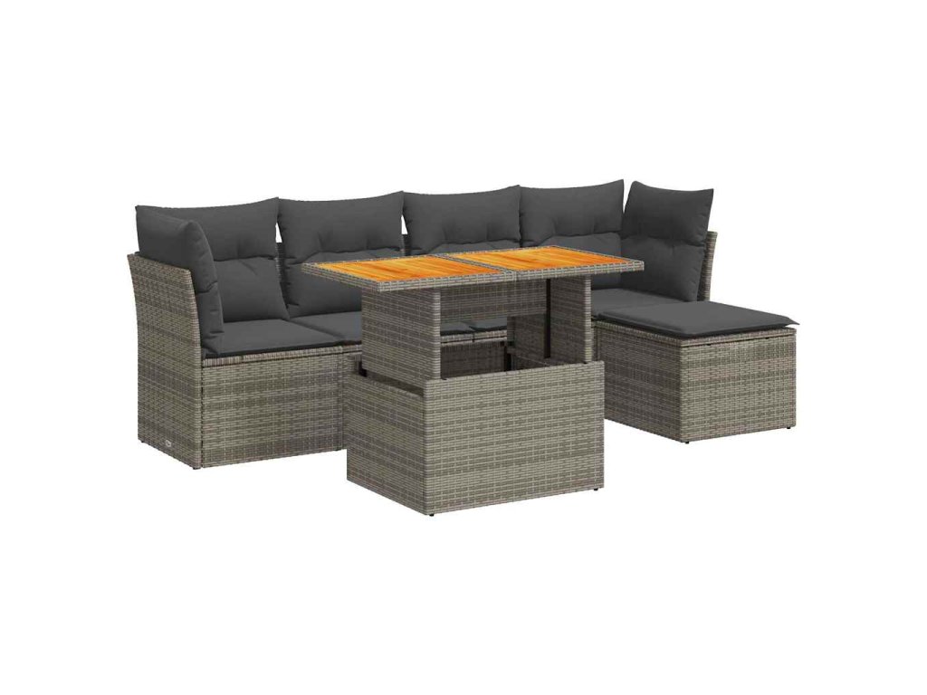 6dílná zahradní sedací souprava s poduškami šedá polyratan 3326916