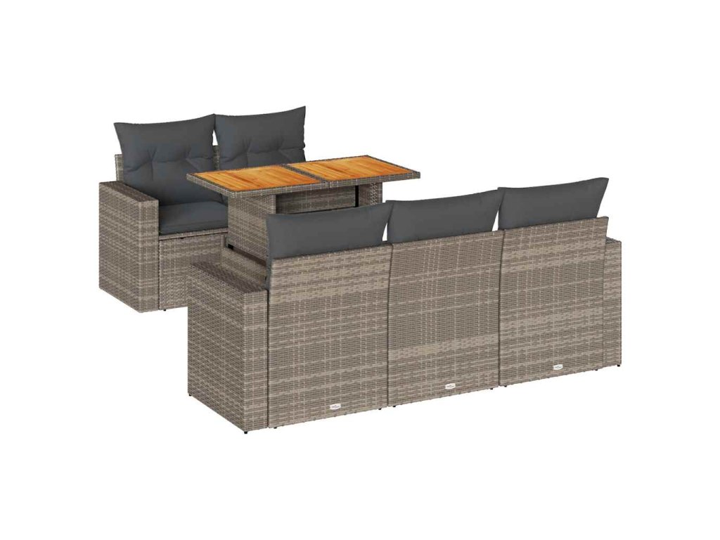 6dílná zahradní sedací souprava s poduškami šedá polyratan 3326993