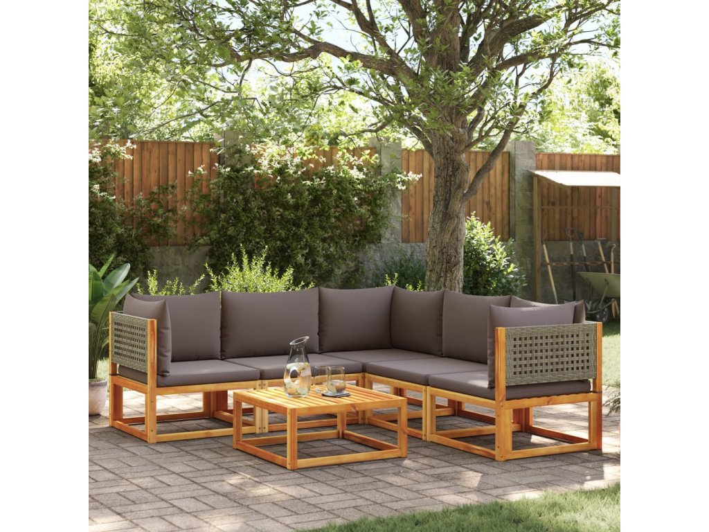 6dílná zahradní sedací souprava s polštáři, akácie a ratan 3278897