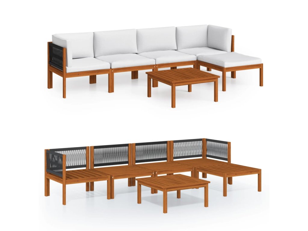 6dílná zahradní sedací souprava s polštáři krémové dřevo akácie a provaz 3057900