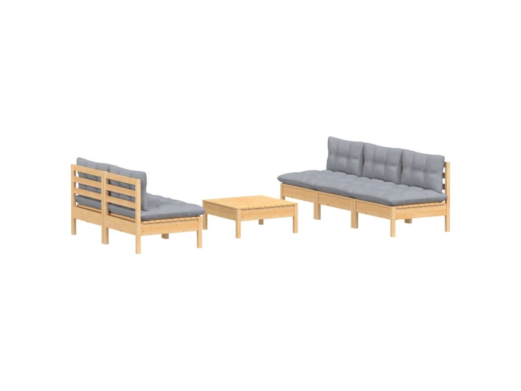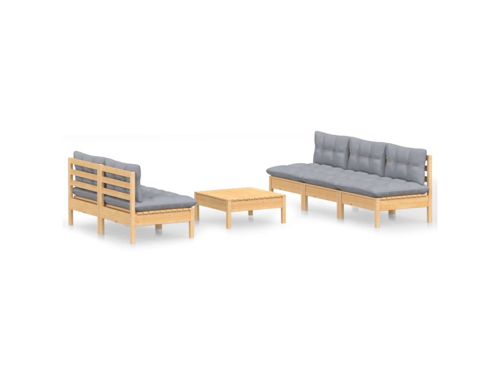 6dílná zahradní sedací souprava s šedými poduškami borovice 3096087