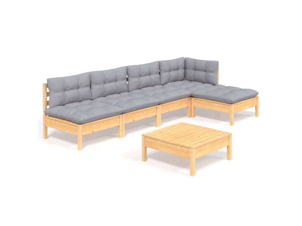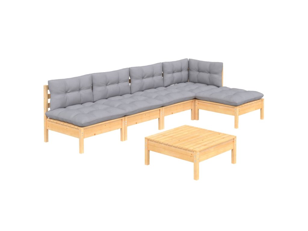 6dílná zahradní sedací souprava s šedými poduškami borovice 3096339