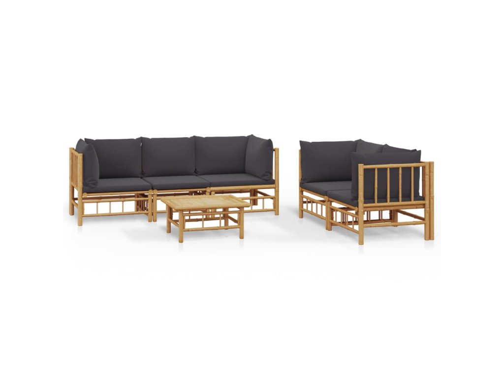 6dílná zahradní sedací souprava s tmavě šedými poduškami bambus 3155218