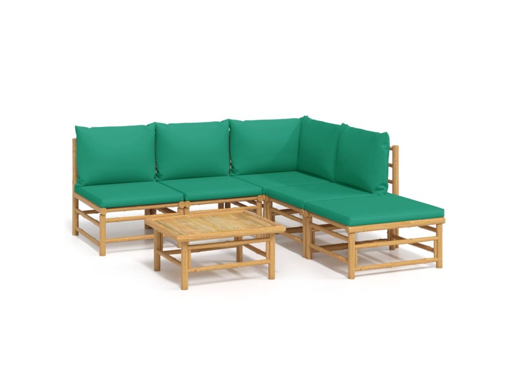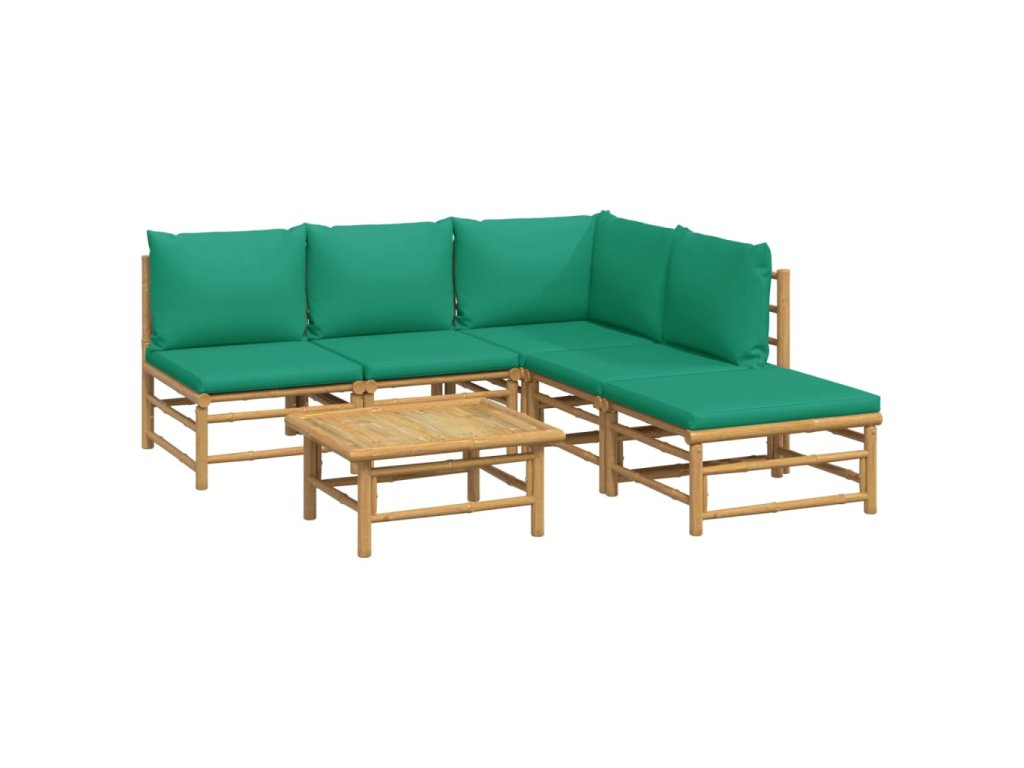 6dílná zahradní sedací souprava se zelenými poduškami bambus 3155167