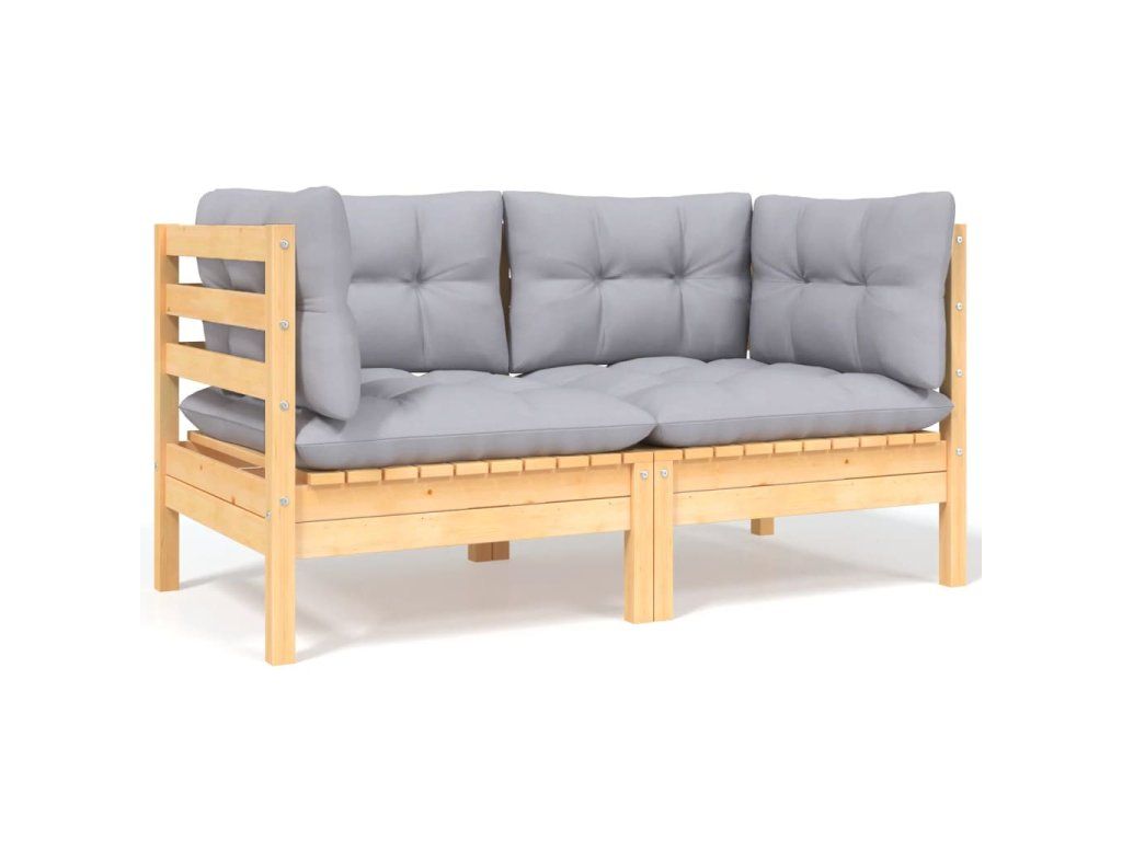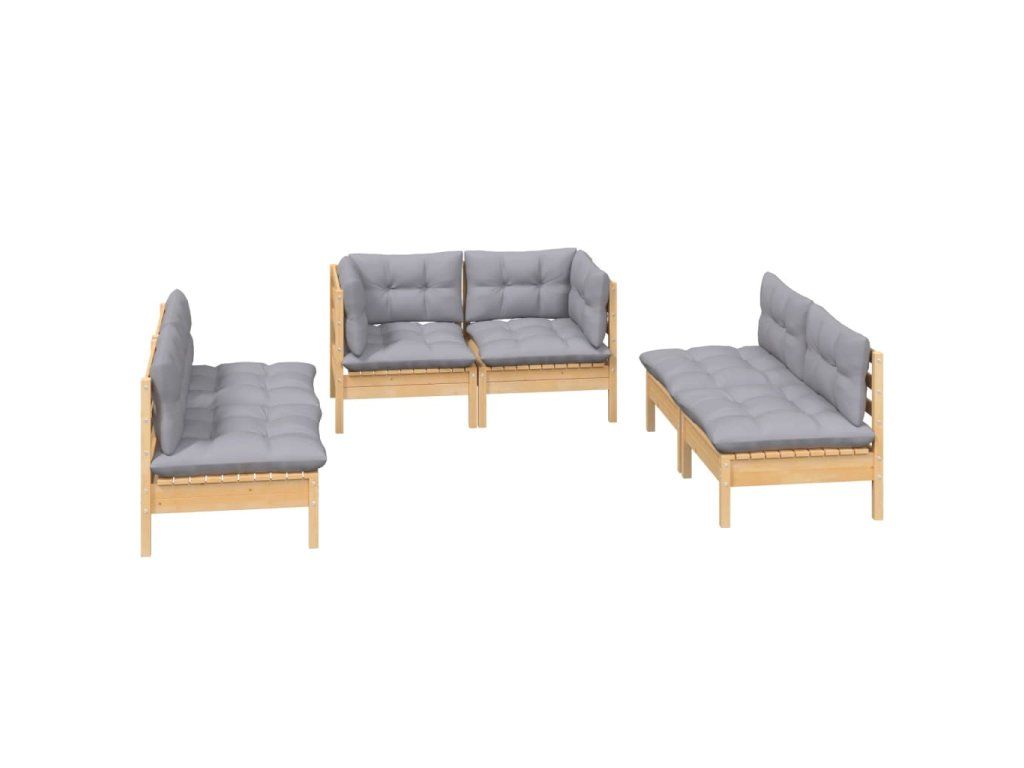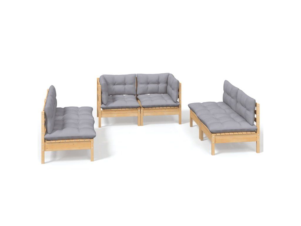 6dílná zahradní sedací souprava šedé podušky masivní borovice 3096207