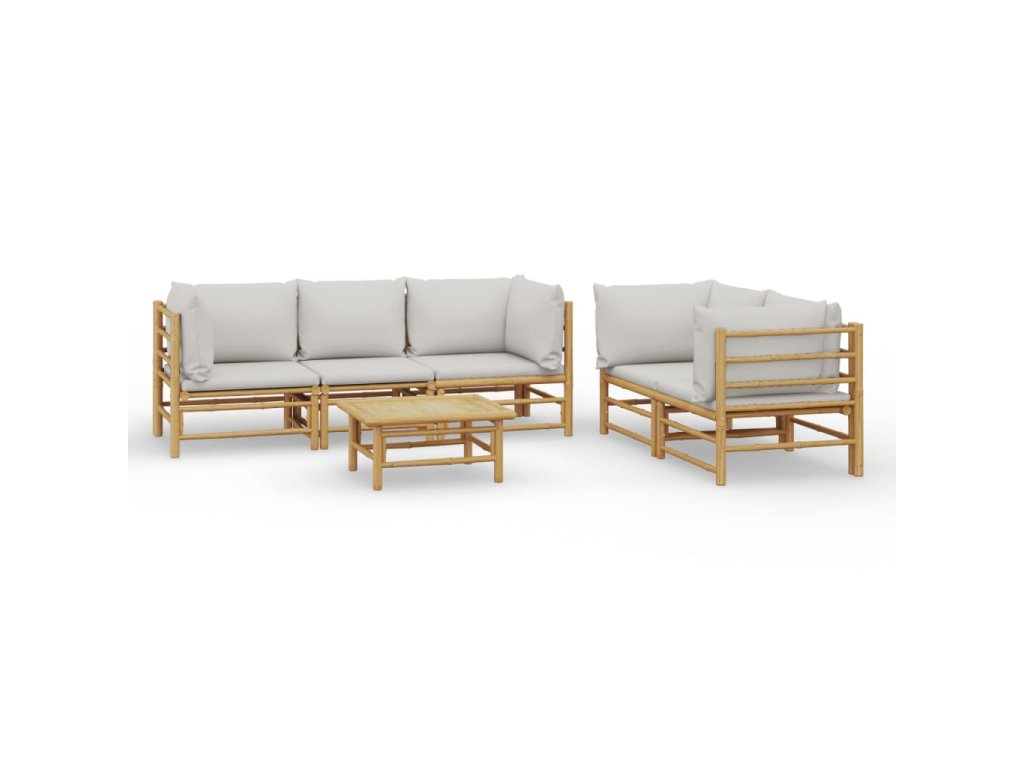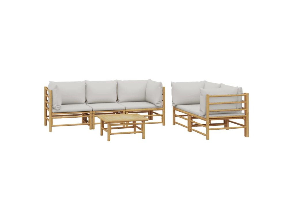6dílná zahradní sedací souprava světle šedé podušky bambus 3155090
