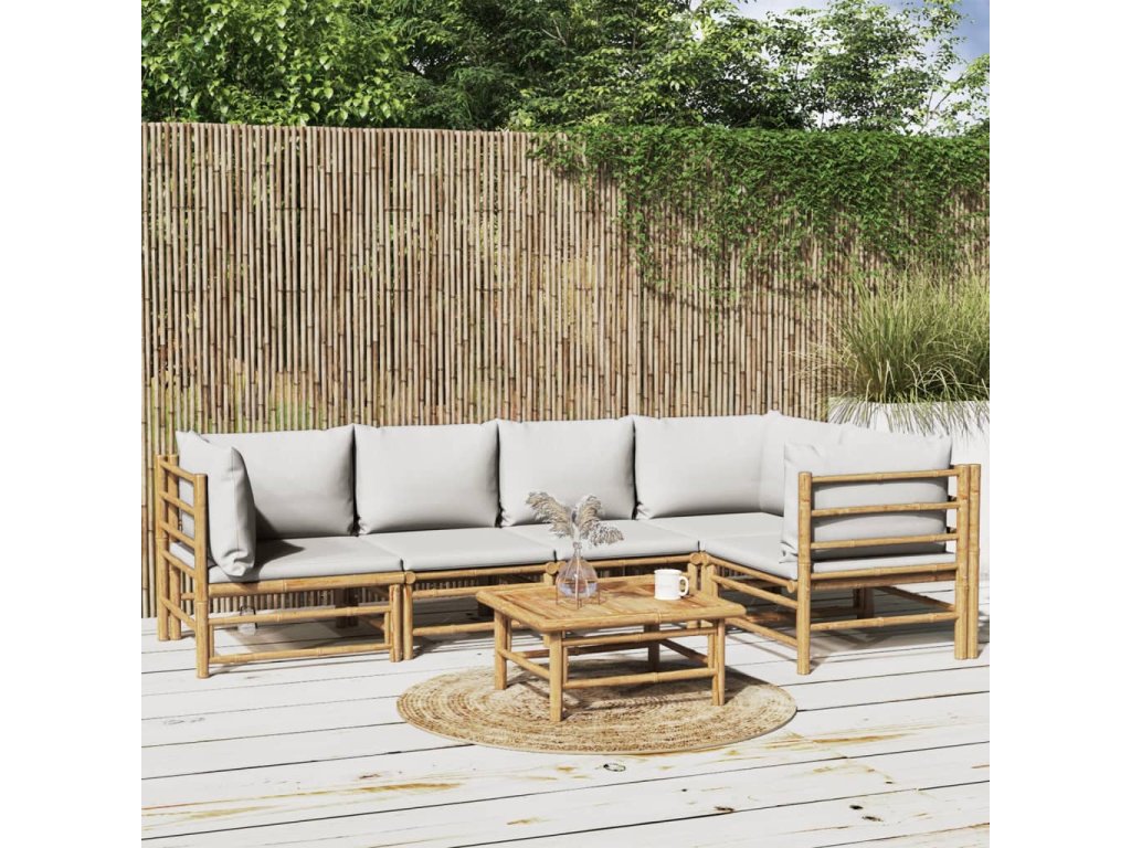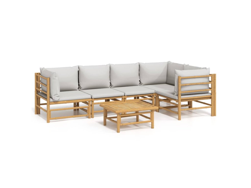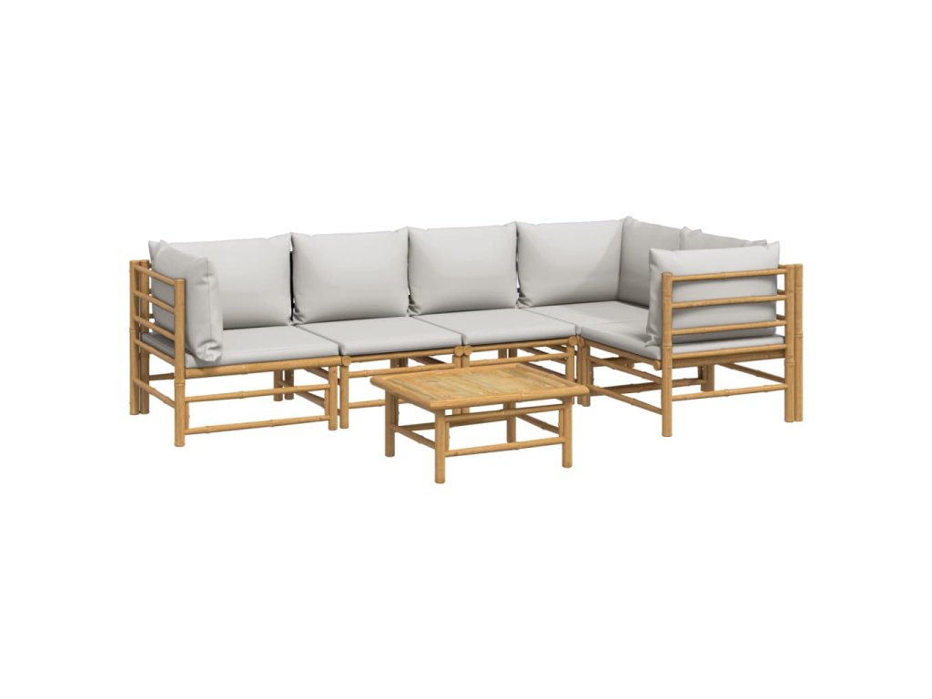 6dílná zahradní sedací souprava světle šedé podušky bambus 3155105