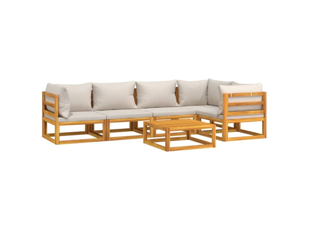 6dílná zahradní sedací souprava světle šedé podušky masiv 3155301