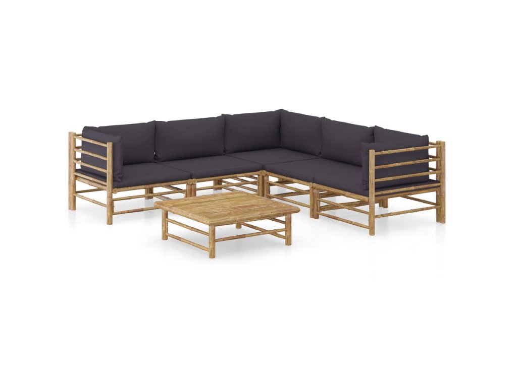 6dílná zahradní sedací souprava + tmavě šedé podušky bambus 3058214