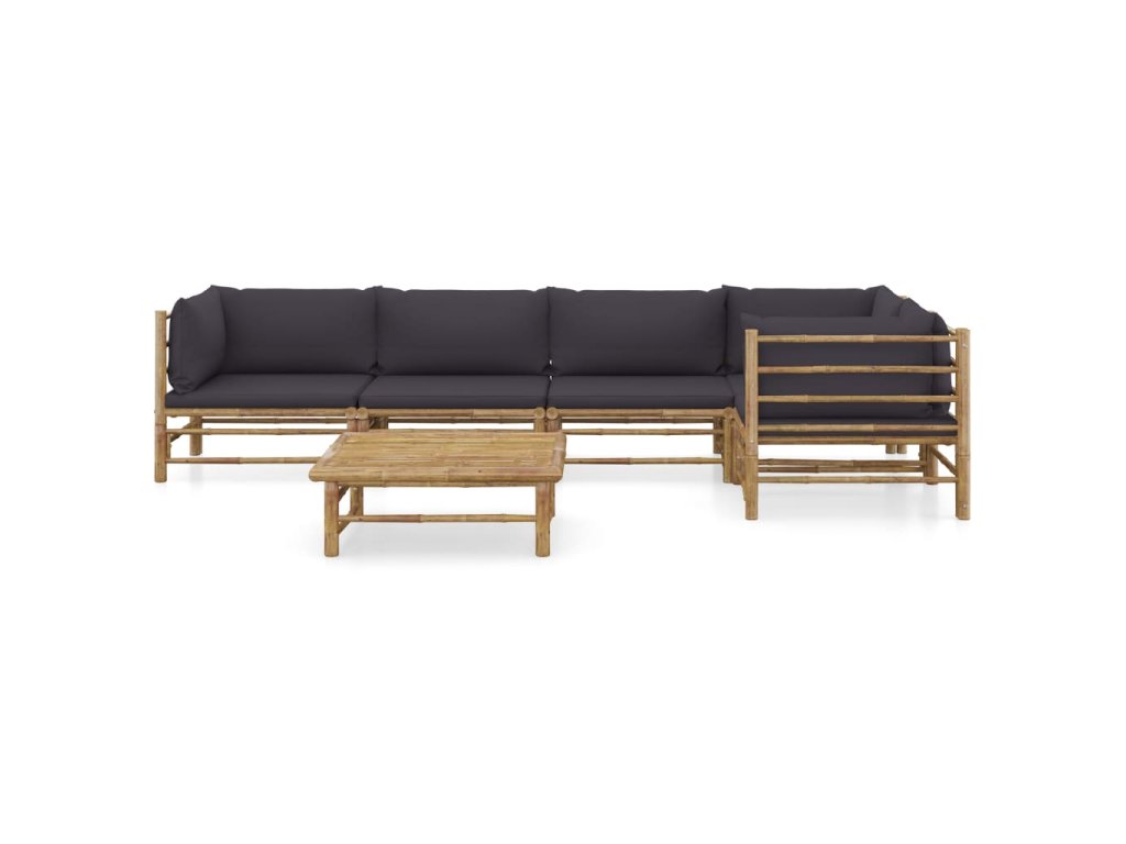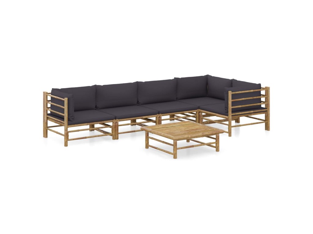 6dílná zahradní sedací souprava + tmavě šedé podušky bambus 3058240