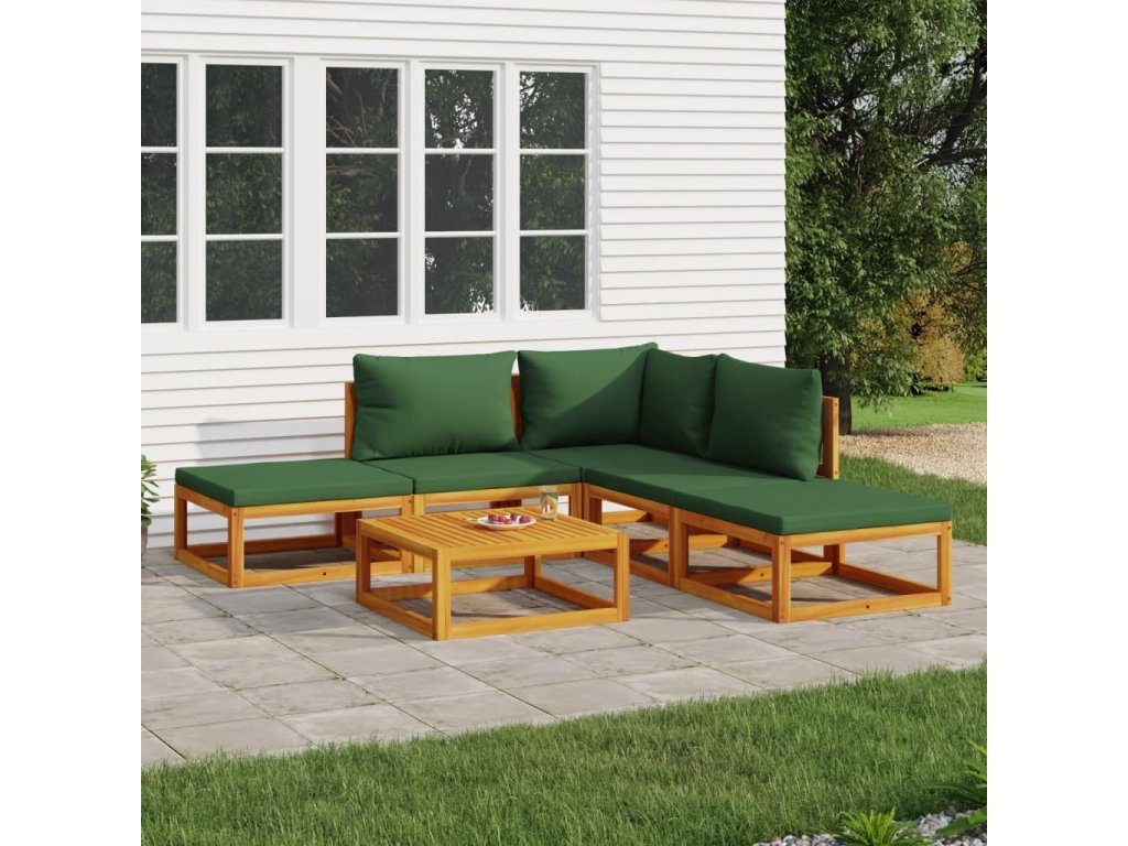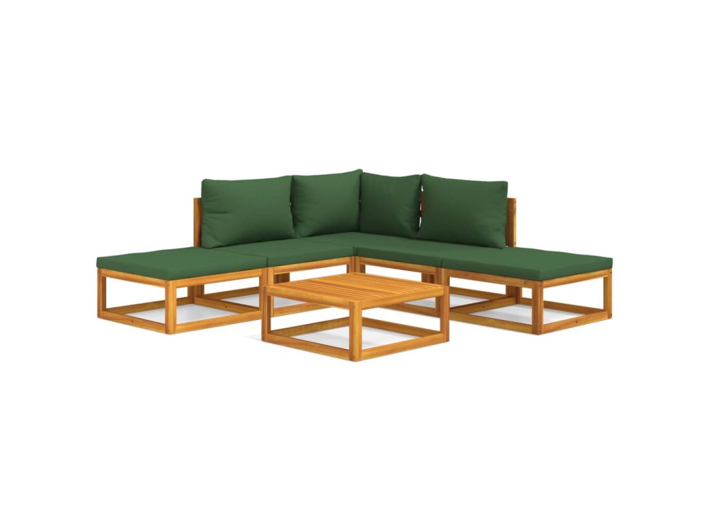 6dílná zahradní sedací souprava zelené podušky masivní dřevo 3155307