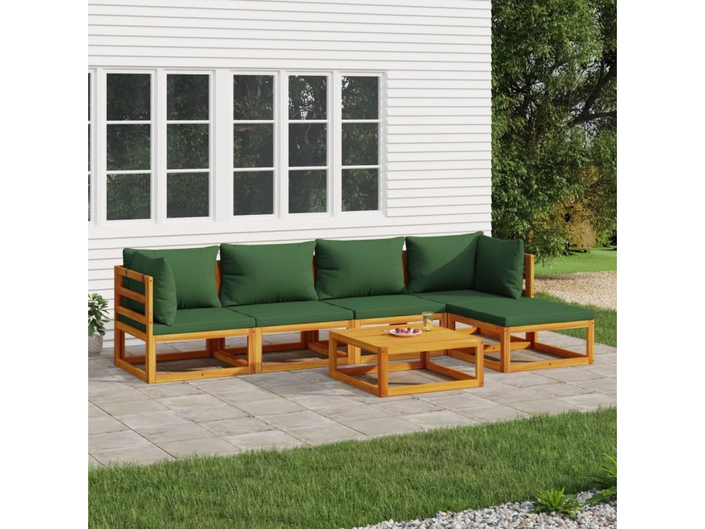 6dílná zahradní sedací souprava zelené podušky masivní dřevo 3155312
