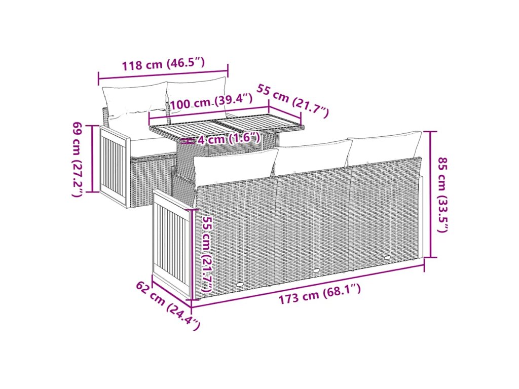 Tato zahradní sedací souprava je dokonalým doplňkem vaší zahrady, terasy nebo dvorku a poskytne vám pohodlné a příjemné místo, kde si můžete povídat s rodinou a přáteli nebo jen tak odpočívat a užívat si pobyt venku.