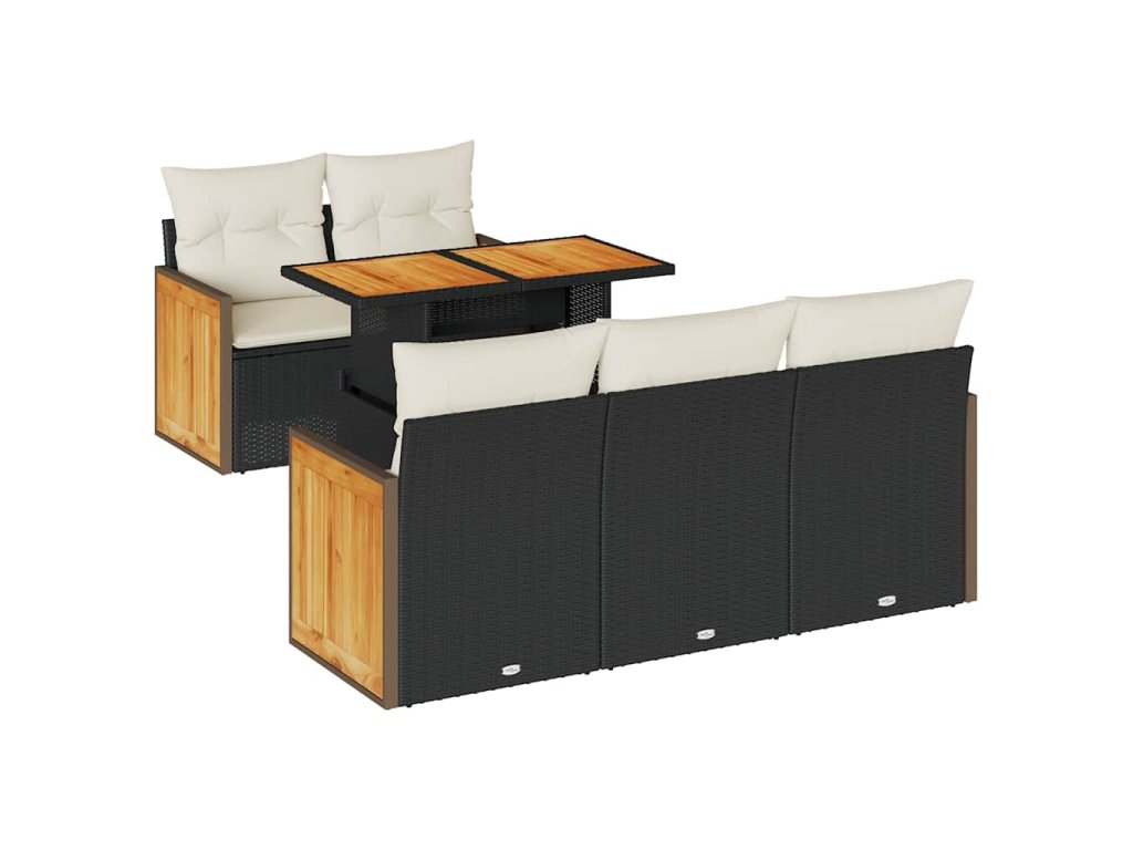 6dílná zahradní sestava s poduškami černá polyratan akácie 3327661