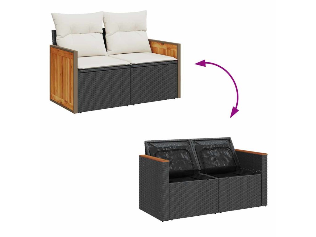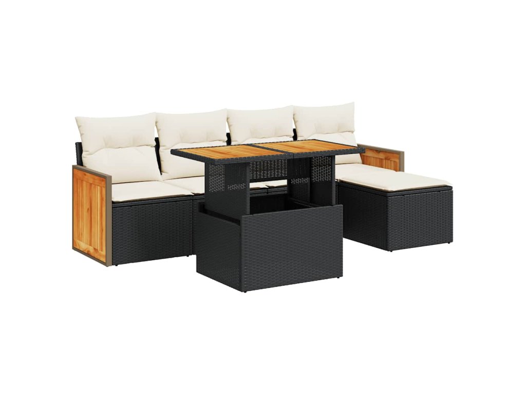 6dílná zahradní sestava s poduškami černá polyratan akácie 3327696