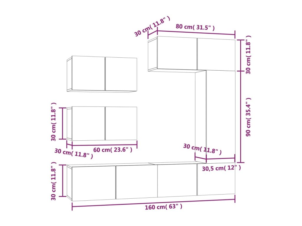 - 3x TV skříňka: 80 x 30 x 30 cm (D x Š x V)