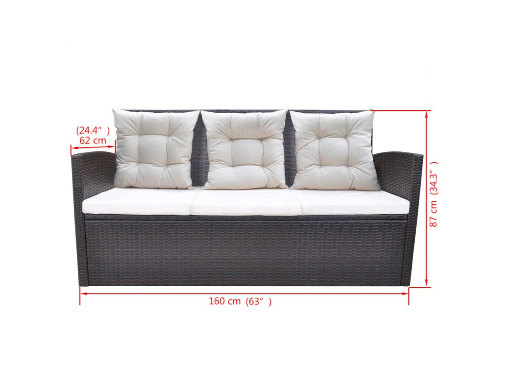 - Rozměry třímístné pohovky: 160 x 62 x 87 cm (Š x H x V)