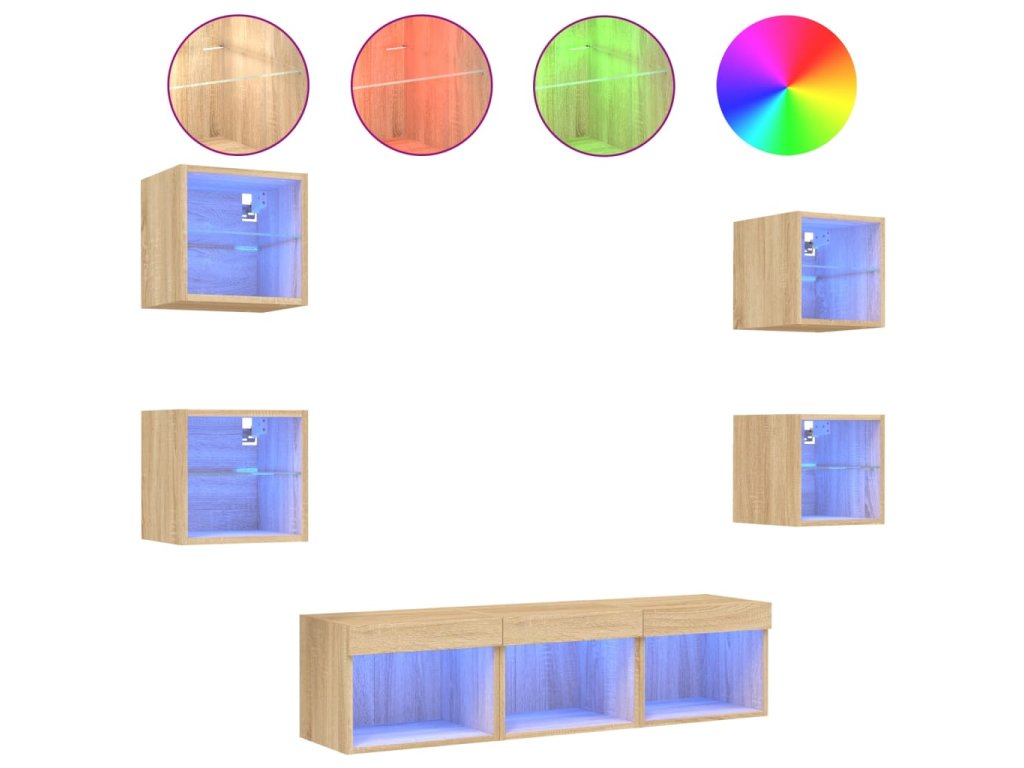 7dílná obývací stěna s LED dub sonoma kompozitní dřevo 3216585