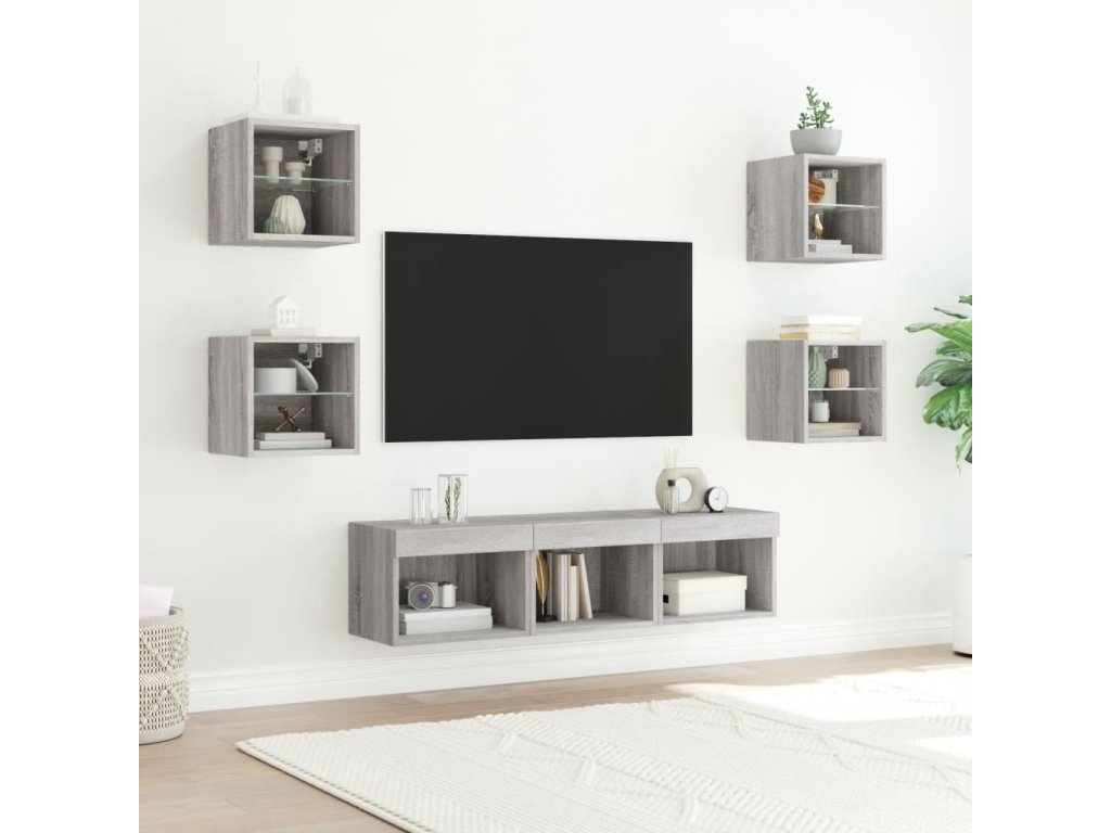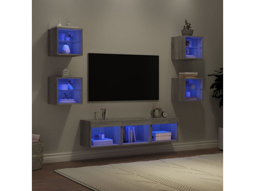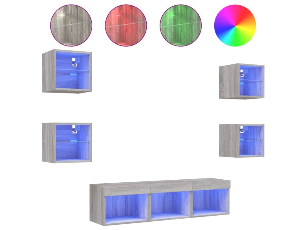 7dílná obývací stěna s LED šedá sonoma kompozitní dřevo 3216588