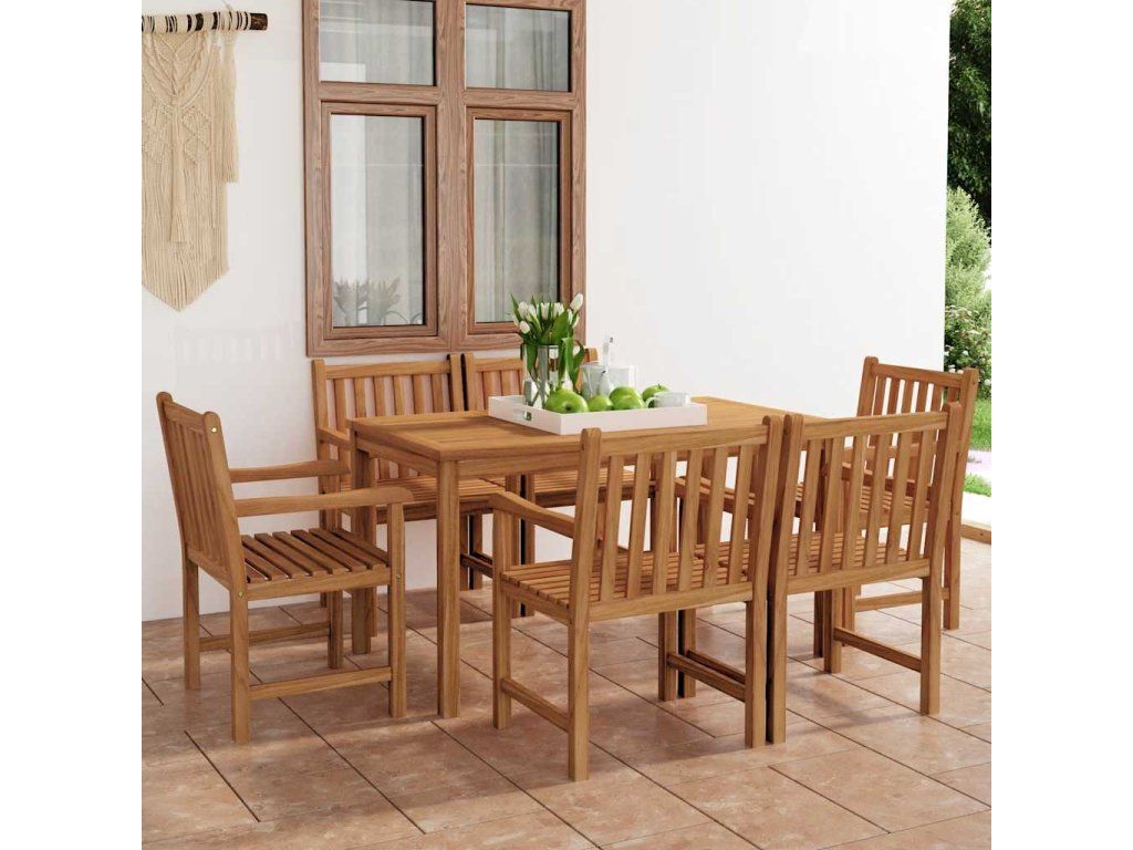 7dílná zahradní jídelní sada 140 x 80 cm masivní teakové dřevo 3059932