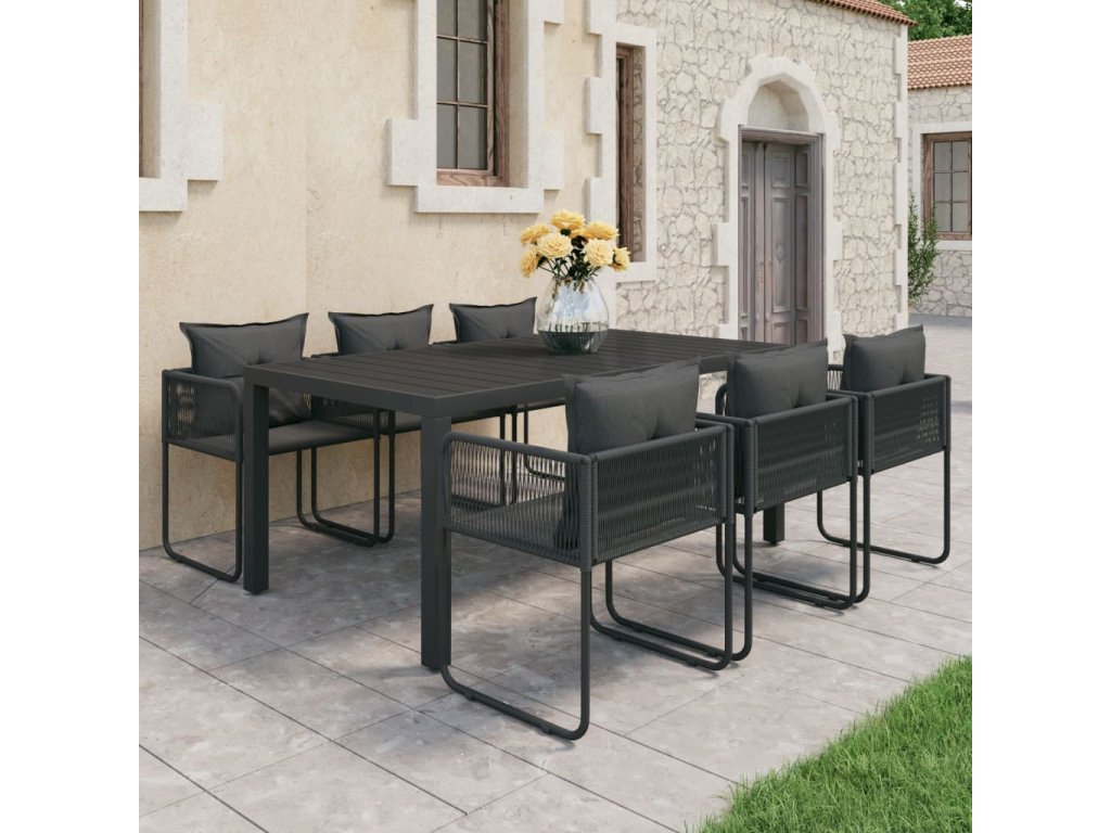 7dílná zahradní jídelní souprava PVC ratan černá 3060104