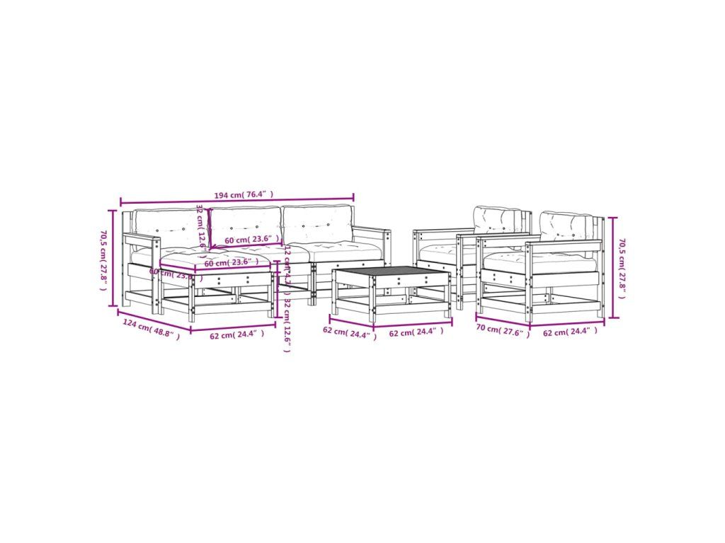 7dílná zahradní sedací souprava a podušky impregnovaná borovice 3185835