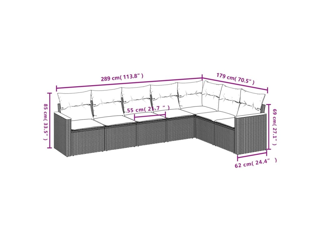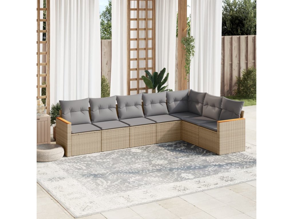 7dílná zahradní sedací souprava a podušky mix béžové polyratan 3226031