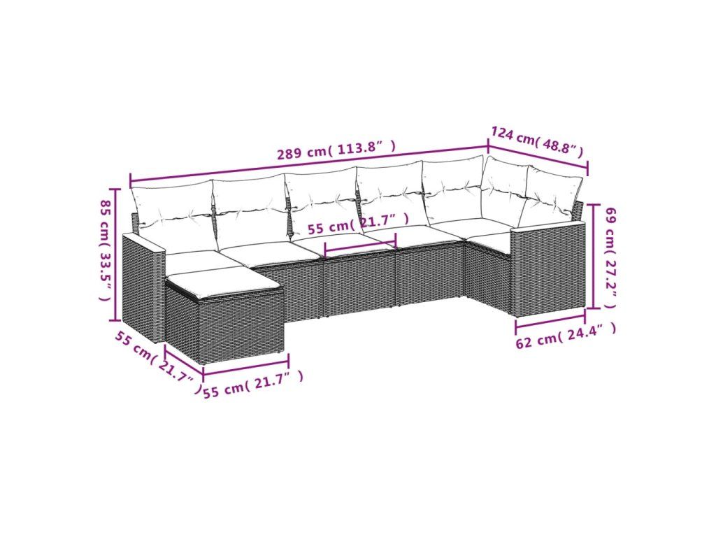 7dílná zahradní sedací souprava a podušky mix béžové polyratan 3226192