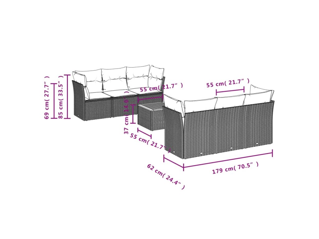 Tato zahradní sedací souprava je dokonalým doplňkem vaší zahrady, terasy nebo dvorku a poskytne vám pohodlné a příjemné místo, kde si můžete povídat s rodinou a přáteli nebo jen tak odpočívat a užívat si pobyt venku.