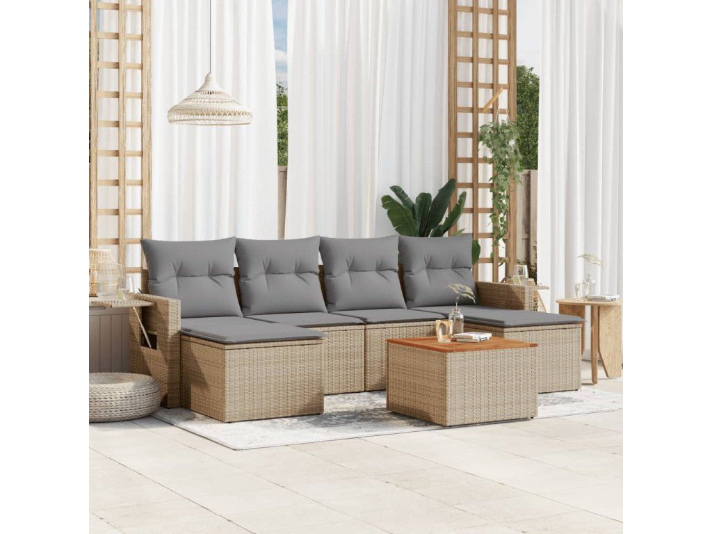 7dílná zahradní sedací souprava a podušky mix béžové polyratan 3257018