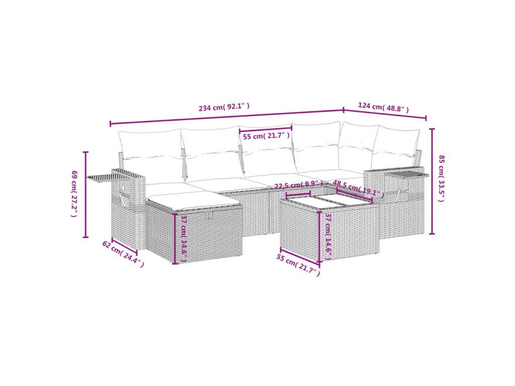 Tato zahradní sedací souprava je dokonalým doplňkem vaší zahrady, terasy nebo dvorku a poskytne vám pohodlné a příjemné místo, kde si můžete povídat s rodinou a přáteli nebo jen tak odpočívat a užívat si pobyt venku.